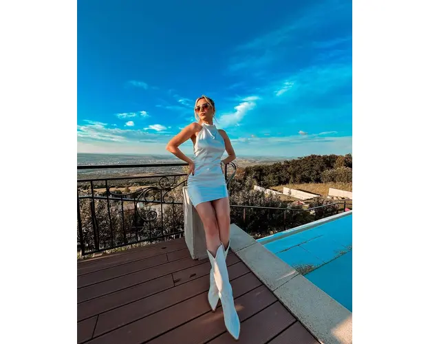 Rochia Evelyn este cambrata pe corp, evidentiind elegant silueta. Spatele gol adauga un element senzual si sofisticat, iar funda mare care se leaga dupa gat ofera un detaliu dramatic si feminin. Ideala pentru ocazii speciale, aceasta rochie imbina rafinamentul cu un stil indraznet.Caracteristici:Fermoar ascuns pe fustaInchidere tip funda dupa gat la spate Balene pe corsetCompozitie:96% polyester, 4% spandexMaterial tafta elasticaInformatii: Informatii Suplimentare la telefon 0768 807 388Produse Realizate in Atelierul GLAMO Produsul cu denumirea Rochie Evelyn Alb face parte din brandul , se afla in categoria Rochii si subcategoria