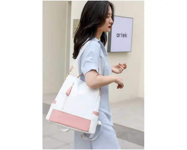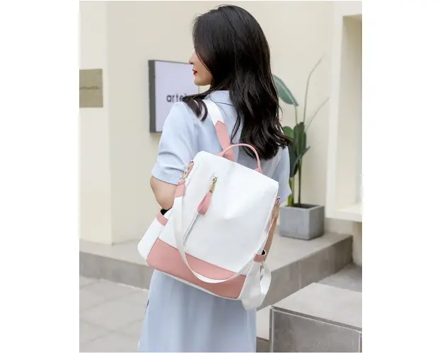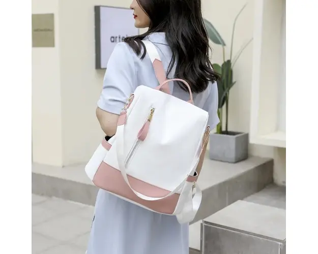 Rucsac dama Carla GT2173, antifurt, Alb/Roz