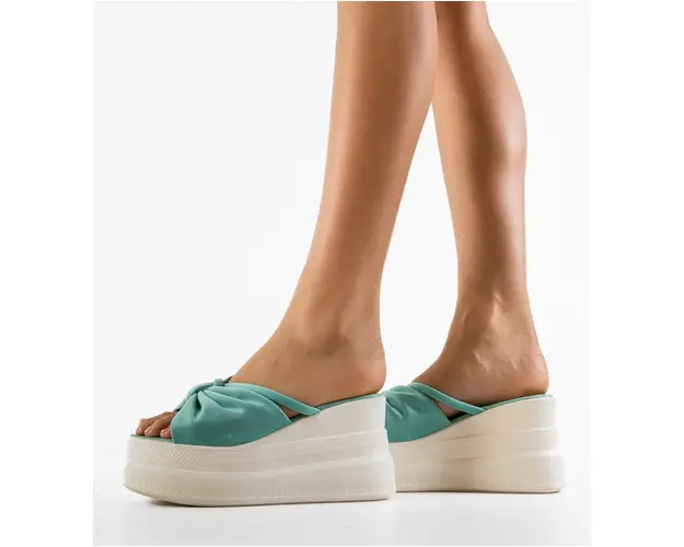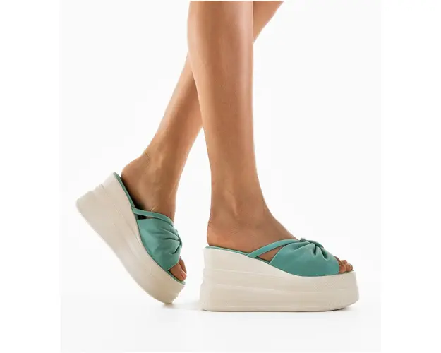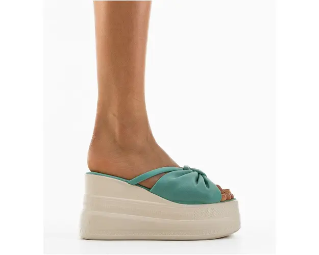 Produsul cu denumirea Saboti dama Banna Turcoaz face parte din brandul Mek, se afla in categoria Sandale cu toc si subcategoria