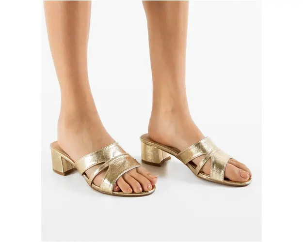 Produsul cu denumirea Saboti dama Bishamon Aurii face parte din brandul Mek, se afla in categoria Sandale cu toc si subcategoria