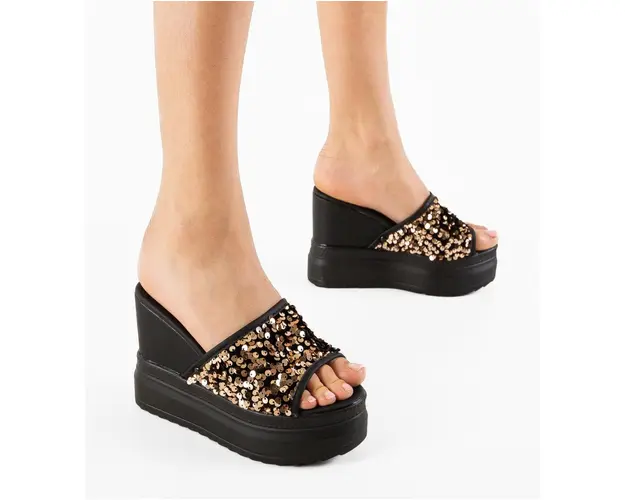 Produsul cu denumirea Saboti dama Karuen Aurii face parte din brandul Mek, se afla in categoria Sandale cu toc si subcategoria