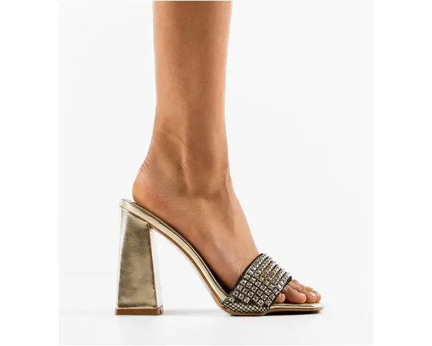 Produsul cu denumirea Saboti dama Safa Aurii face parte din brandul Aldo, se afla in categoria Sandale cu toc si subcategoria