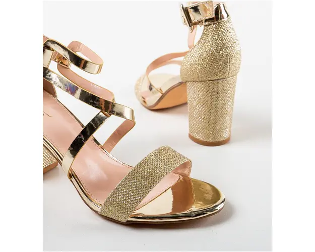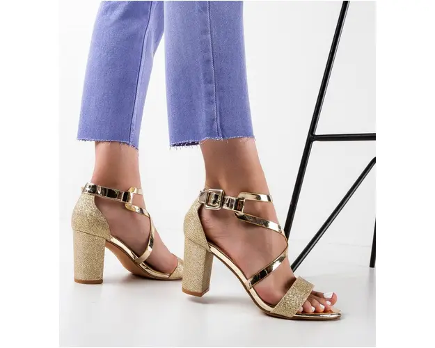Produsul cu denumirea Sandale dama Cafere Aurii face parte din brandul Mek, se afla in categoria Sandale cu toc si subcategoria