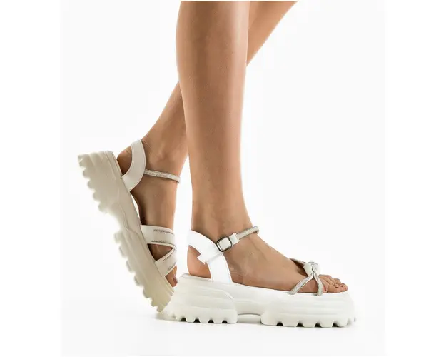 Produsul cu denumirea Sandale dama Chariz Albe face parte din brandul Mek, se afla in categoria Sandale cu toc si subcategoria