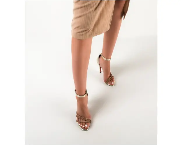 Produsul cu denumirea Sandale dama Gogo Aurii face parte din brandul Exist shoes, se afla in categoria Sandale cu toc si subcategoria