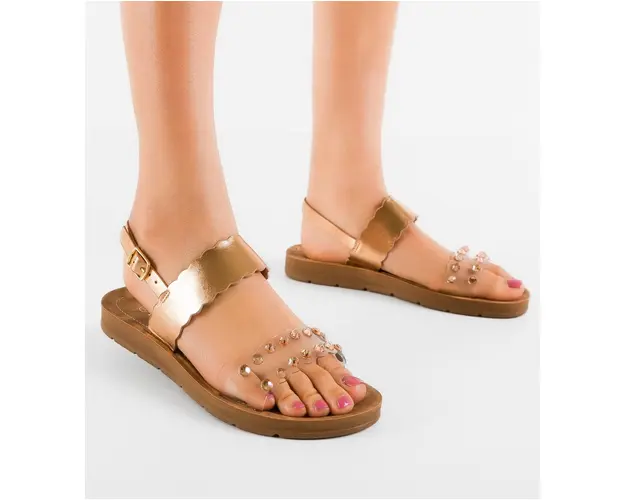 Produsul cu denumirea Sandale dama Leilani Aurii 2 face parte din brandul Lulux, se afla in categoria Sandale cu toc si subcategoria