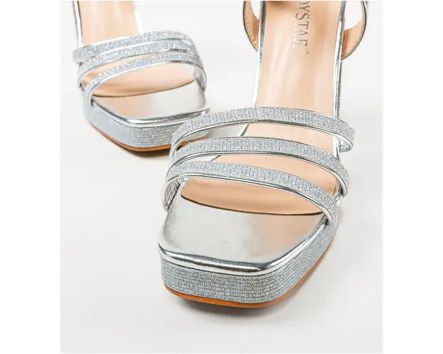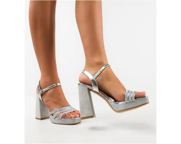 Produsul cu denumirea Sandale dama Mittens Argintii face parte din brandul Qing, se afla in categoria Sandale cu toc si subcategoria