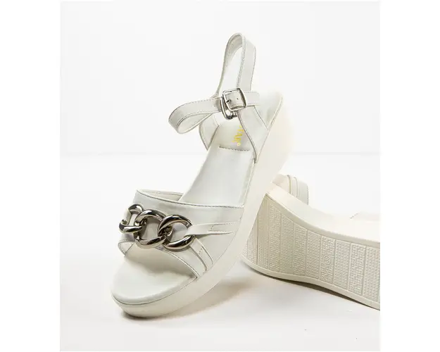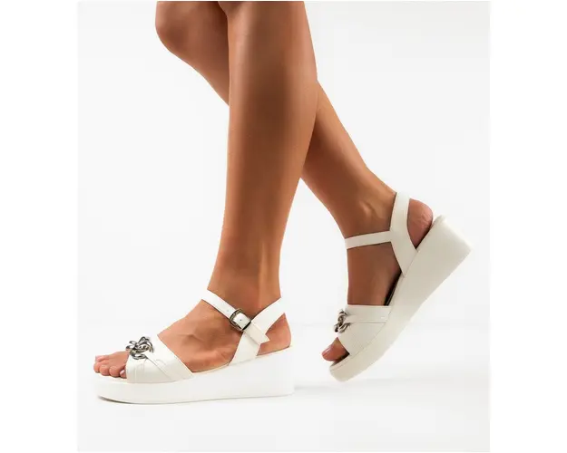 Produsul cu denumirea Sandale dama Peanut Albe face parte din brandul Qing, se afla in categoria Sandale cu toc si subcategoria