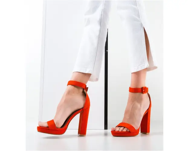 Produsul cu denumirea Sandale dama Roman Portocalii face parte din brandul Exist shoes, se afla in categoria Sandale cu toc si subcategoria
