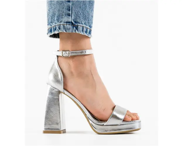 Sandale cu toc Abiola Argintii