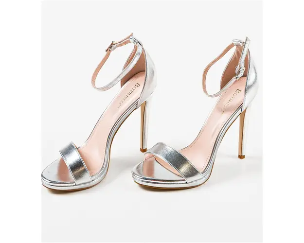 Sandale cu toc Akou Argintii