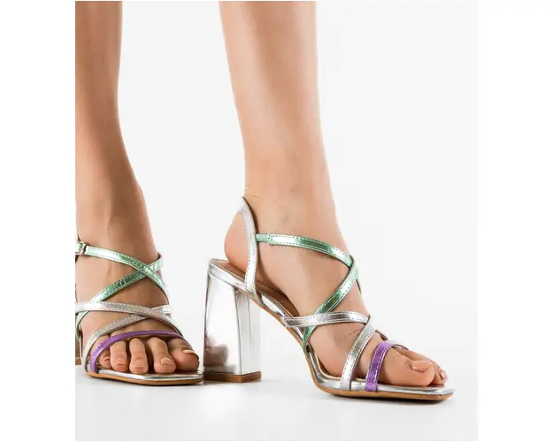 Sandale cu toc Amahle Argintii