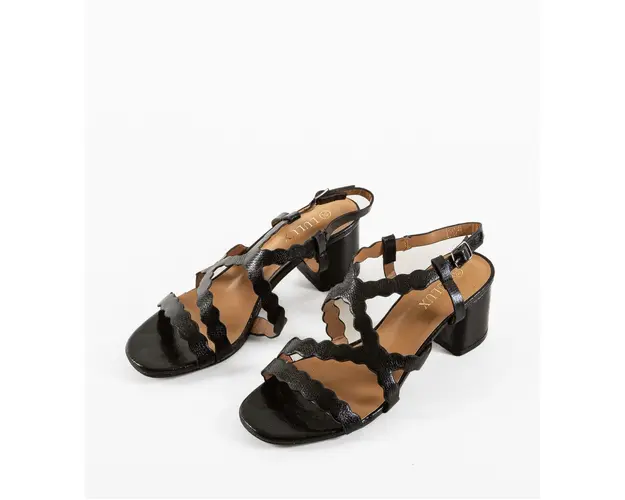 Produsul cu denumirea Sandale cu toc Azura Negre face parte din brandul Lulux, se afla in categoria Sandale cu toc si subcategoria