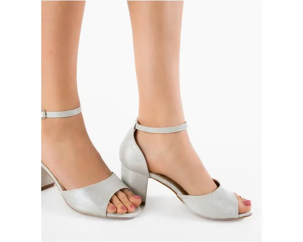 Sandale cu toc Bride Argintii 2