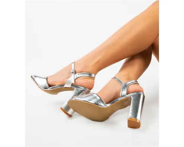 Sandale cu toc Glenna Argintii