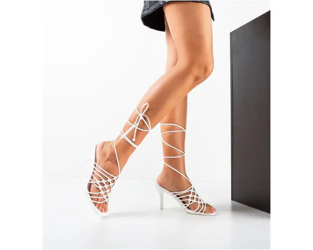Sandale cu toc Griffin Albe
