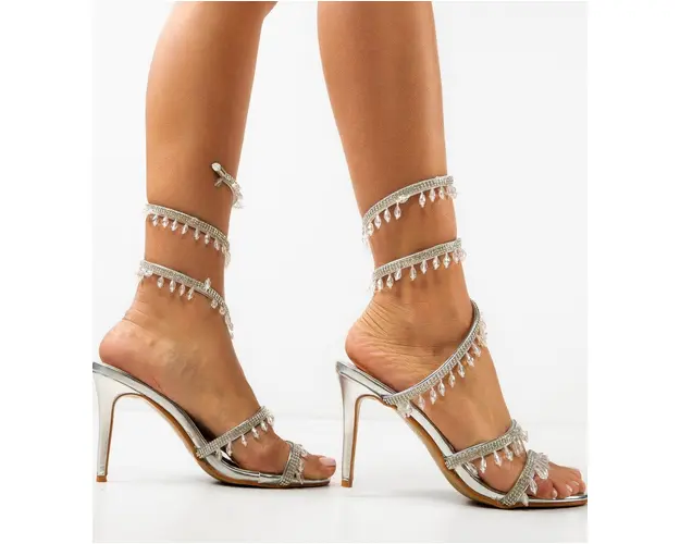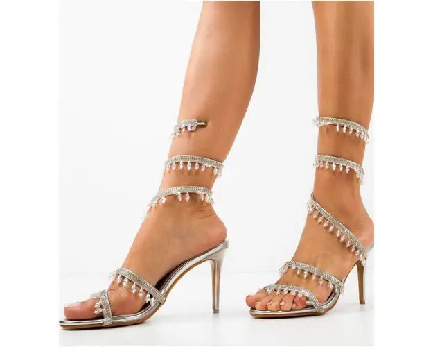 Sandale cu toc Heather Argintii