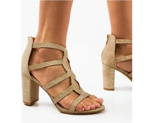 Produsul cu denumirea Sandale cu toc Hoshino Aurii face parte din brandul Mek, se afla in categoria Sandale cu toc si subcategoria