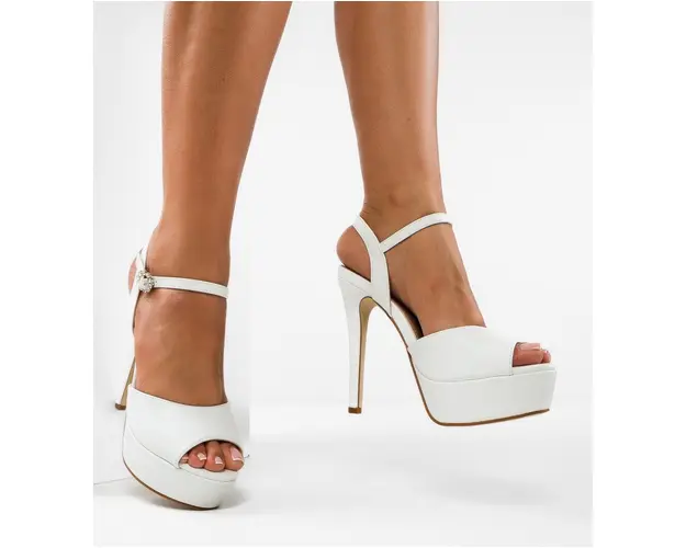 Sandale cu toc Moctez Albe