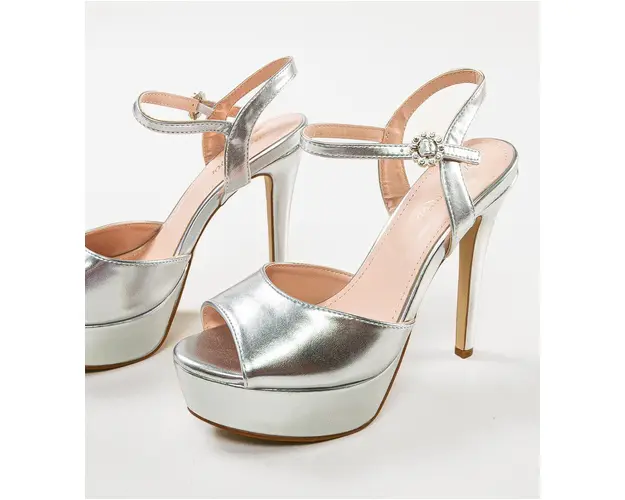 Sandale cu toc Moctez Argintii