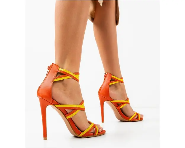 Sandale cu toc Pastor Portocalii