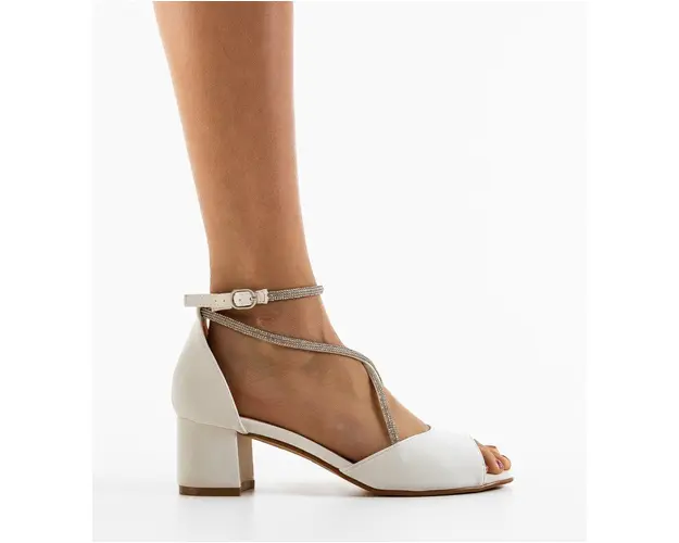 Sandale cu toc Renosa Albe