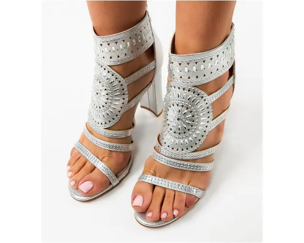 Sandale cu toc Samanta Argintii