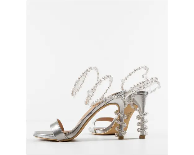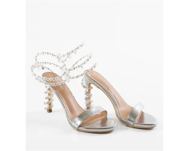 Sandale cu toc Uche Argintii
