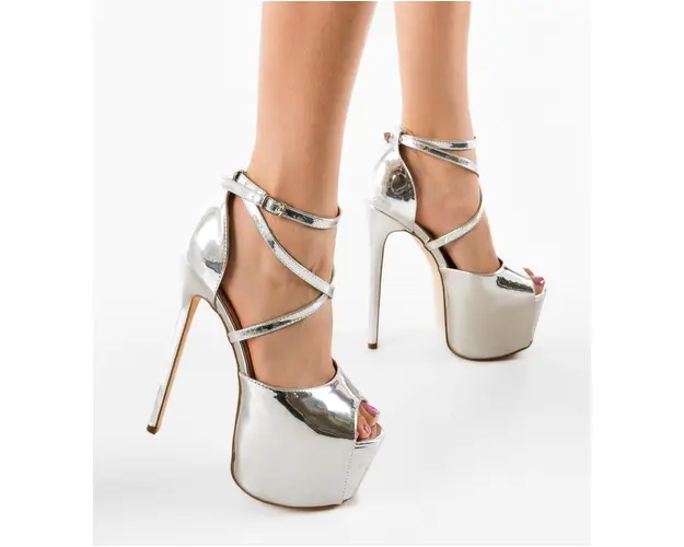 Sandale cu toc Vanam Argintii