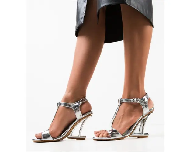 Sandale cu toc Zoya Argintii