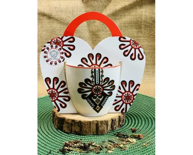 Cana din portelan ambalata tip cadou, ornata in motive etnice, rurale, ce aminteste de motivele specifice portului traditional. Face parte din colectia ''Etno Line'' si este caracterizata de o grafica ce contine motive populare, stilizate, inspirate din natura, prezente pe vesmintele masculine poloneze. Este un cadou ideal atat pentru iubitorii de traditie cat si pentru cei ce iubesc frumosul. Specificatii: capacitate: 460ml; diametrul: 10.2 cm; inaltime: 9.5 cm. Material: Portelan. Poate fi spalata la masina de vase si este permisa folosirea acesteia in cuptorul cu microunde Produsul cu denumirea Cana, 460 ml, Folklor face parte din brandul , se afla in categoria Servire si subcategoria