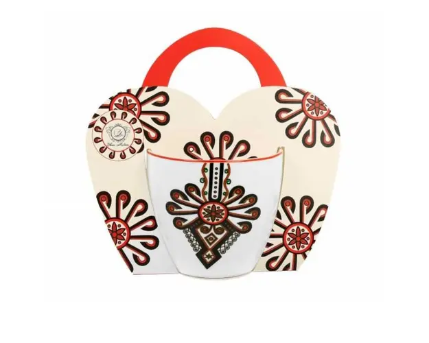 Cana din portelan ambalata tip cadou, ornata in motive etnice, rurale, ce aminteste de motivele specifice portului traditional. Face parte din colectia ''Etno Line'' si este caracterizata de o grafica ce contine motive populare, stilizate, inspirate din natura, prezente pe vesmintele masculine poloneze. Este un cadou ideal atat pentru iubitorii de traditie cat si pentru cei ce iubesc frumosul. Specificatii: capacitate: 460ml; diametrul: 10.2 cm; inaltime: 9.5 cm. Material: Portelan. Poate fi spalata la masina de vase si este permisa folosirea acesteia in cuptorul cu microunde Produsul cu denumirea Cana, 460 ml, Folklor face parte din brandul , se afla in categoria Servire si subcategoria
