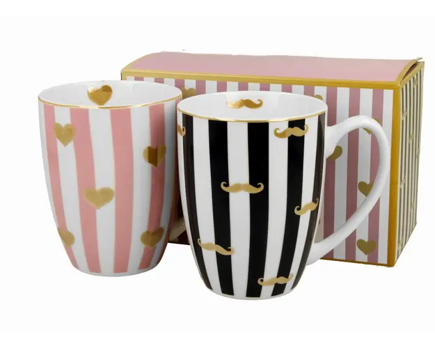 Set de doua cani cu un design incantator si plin de personalitate, perfect pentru a adauga un strop de eleganta si originalitate colectiei de cani. Fiecare cana din acest set are o capacitate de 380 ml si este confectionata din finul portelan New Bone China, recunoscut pentru culoarea sa naturala crem-alba si pentru subtilul luciu care ii accentueaza delicatetea. Portelanul New Bone China este apreciat nu doar pentru aspectul sau estetic, ci si pentru rezistenta si durabilitatea sa, oferind in acelasi timp o senzatie de lejeritate si finete la atingere. Unul dintre cele mai atractive aspecte ale acestor cani este designul lor unic: una dintre cani este impodobita cu dungi verticale roz si inimioare aurii, in timp ce cealalta prezinta dungi verticale negre si mustati aurii. Aceasta combinatie de motive confera fiecarei cani un caracter distinct si un farmec aparte, facand setul o alegere ideala pentru cei care apreciaza detaliile rafinate si accentele de culoare aurie in vesela lor. Cu un diametru de 8,2 cm si o inaltime de 10,3 cm, aceste cani sunt suficient de spatioase pentru bautura preferata, fie ca este vorba de un ceai aromatic, o cafea intensa sau orice alt lichid care va insoteste momentele de relaxare sau conversatiile prietenoase. In plus, canile sunt concepute pentru a fi folosite cu usurinta in viata de zi cu zi, fiind compatibile atat cu masina de spalat vase, cat si cu cuptorul cu microunde. Aceasta functionalitate le face nu doar frumoase, ci si extrem de practice. Setul contine doua cani, oferindu-va posibilitatea de a le folosi in diverse ocazii, fie ca este vorba de un mic rasfat personal sau de a le impartasi cu cineva drag. Indiferent de moment, canile cu dungi verticale, inimioare si mustati aurii vor aduce un plus de stil si personalitate oricarui set de vesela. Produsul cu denumirea Set 2 cani MOUSTACHE&HEARTS face parte din brandul , se afla in categoria Servire si subcategoria
