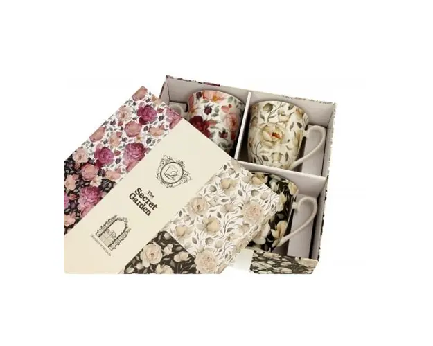 Patrunde in lumea linistita si plina de farmec a gradinilor secrete cu setul de 4 cani "Secret Garden". Fiecare cana din acest set este decorata cu un model floral unic, evocand frumusetea si misterul unei gradini ascunse, unde natura se intalneste cu eleganta. Perfect pentru a adauga un strop de rafinament si culoare oricarui moment de relaxare. Caracteristici principale: Design floral misterios: Fiecare cana din set este decorata cu un model floral distinct, inspirat de delicatetea si splendoarea gradinilor secrete, aducand un plus de farmec fiecarei bauturi. Material de inalta calitate: Fabricate din ceramica durabila, caniile "Secret Garden" sunt concepute pentru utilizare zilnica, combinand frumusetea cu functionalitatea. Capacitate ideala: Cu dimensiuni generoase, aceste cani sunt perfecte pentru savurarea ceaiului, cafelei sau a oricarei bauturi preferate, transformand fiecare clipa intr-o experienta plina de rafinament. Cadou perfect: Setul "Secret Garden" vine ambalat elegant, fiind un cadou ideal pentru cei care iubesc designul floral si momentele de relaxare intr-un cadru plin de eleganta. Adauga un strop de magie si eleganta colectiei tale de cesti cu setul "Secret Garden". Aceste cani sunt perfecte pentru a aduce un plus de stil si mister fiecarui moment de relaxare, fie ca esti acasa sau la birou. Produsul cu denumirea Set 4 cani 300 ml FLOWER MIX face parte din brandul , se afla in categoria Servire si subcategoria