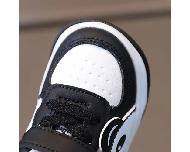 Marimi: 9-12 (lungime talpita in interior 11,5 cm) (marime producator 16) Marimea 20 (lungime talpita in interior 12 cm) (marime producator 17) Marimea 21 (lungime talpita in interior 12,5 cm) (marime producator 18) Marimea 22 (lungime talpita in interior 13 cm) (marime producator 19) Marimea 23 (lungime talpita in interior 13,5 cm) (marime producator 20) Adidasi pentru copii, din material tip piele ecologica, cu un ursulet panda aplicat intr-o parte. Se inchid cu sireturi din elastic si bareta cu arici intr-o parte. Culoare: alb cu negru Talpa: cauciuc flexibil ce faciliteaza mersul cu usurinta al micutului Produsul cu denumirea Adidasi alb cu negru - Love panda face parte din brandul Sevibebe, se afla in categoria Tetine si subcategoria