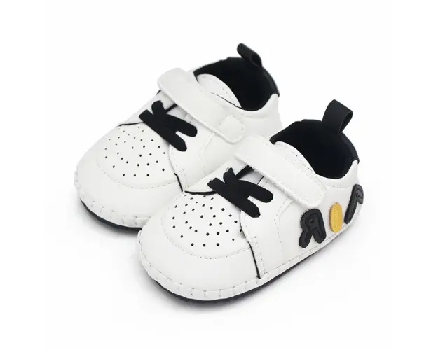 Marimi: 3 -6 luni ( lungime talpita la interior 10,5 cm, lungime talpita la exterior 11 cm) 6-9 luni ( lungime talpita la interior 11,6 cm, lungime talpita la exterior 12 cm) 9-12 luni (lungime talpita la interior 12,7 cm, lungime talpita la exterior 13 cm) Adidasi pentru bebelusi, din material tip piele ecologica, cu inscriptie "Air" intr-o parte, se inchid cu sireturi negre din elastic si cu bareta cu arici. Culoare: alb Talpa: cauciuc moale antiderapant Produsul cu denumirea Adidasi albi - Air face parte din brandul Eurobaby, se afla in categoria Barbie si subcategoria