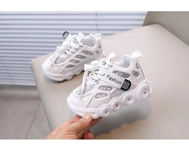 Marimi: 21 (lungime talpita in interior 12,5 cm) 22 (lungime talpita in interior 13 cm) 23 (lungime talpita in interior 13,5 cm) 24 (lungime talpita in interior 14 cm) 25 (lungime talpita in interior 14,5 cm) 26 (lungime talpita in interior 15,5 cm) 27 (lungime talpita in interior 16 cm) 28 (lungime talpita in interior 16,5 cm) 29 (lungime talpita in interior 17 cm) 30 (lungime talpita in interior 17,5 cm) Adidasi pentru copii, din material textil cu insertie de cauciuc. Se inchid cu sireturi ajustabile. Culoare: alb cu gri si ivoire Talpa: flexibila, din cauciuc cu beculete colorate ce se activeaza in timpul mersului. Bateriile sunt sub talpica si pot fi schimbate. Produsul cu denumirea Adidasi albi cu gri si ivoire cu luminite face parte din brandul Eurobaby, se afla in categoria Barbie si subcategoria