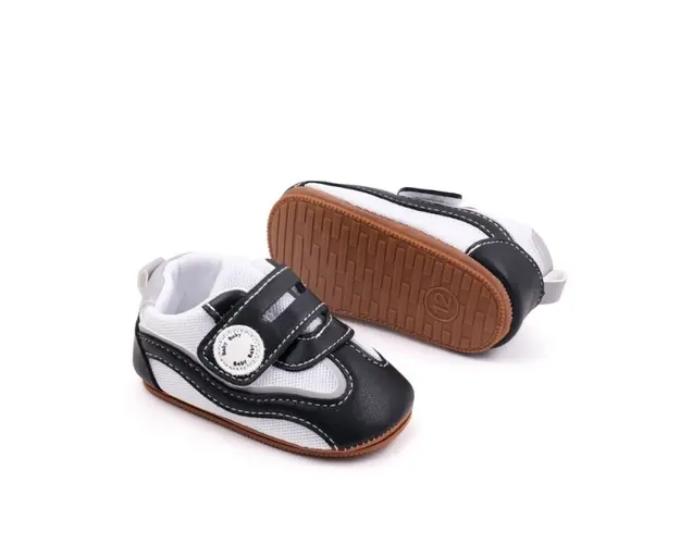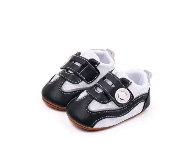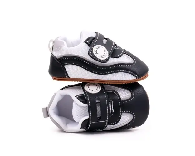 Marimi: 3 -6 luni ( lungime talpita la interior 10,5 cm, lungime talpita la exterior 11 cm) 6-9 luni ( lungime talpita la interior 11,5 cm, lungime talpita la exterior 12 cm) 9-12 luni (lungime talpita la interior 12,5 cm, lungime talpita la exterior 13 cm) Adidasi pentru baietei, se inchid cu bareta cu arici intr-o parte. Culoare: alb cu negru si insertii gri Material: textil cu insertie de piele ecologica Talpa: cauciuc moale, ideala pentru primii pasi Produsul cu denumirea Adidasi albi cu negru pentru baietei - Baby face parte din brandul Eurobaby, se afla in categoria Barbie si subcategoria