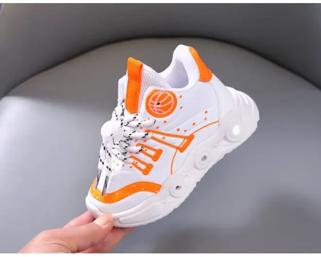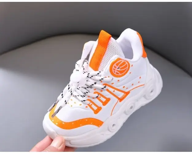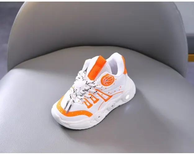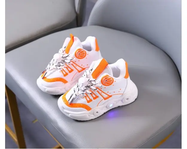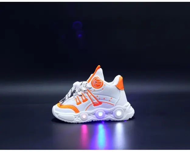 Adidasi albi cu portocaliu cu luminite - Baseball