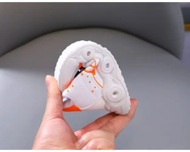 Marimi: 21 (lungime talpita in interior 12,5 cm) 22 (lungime talpita in interior 13 cm) 23 (lungime talpita in interior 13,5 cm) 24 (lungime talpita in interior 14 cm) 25 (lungime talpita in interior 14,5 cm) 26 (lungime talpita in interior 15,5 cm) 27 (lungime talpita in interior 16 cm) 28 (lungime talpita in interior 16,5 cm) 29 (lungime talpita in interior 17 cm) 30 (lungime talpita in interior 17,5 cm) Adidasi pentru copii, din material tip piele ecologica. Se inchid cu sireturi ajustabile. Culoare: albi cu insertii portocalii Talpa: flexibila, din cauciuc cu beculete colorate ce se activeaza in timpul mersului. Bateriile sunt sub talpica si pot fi schimbate. Produsul cu denumirea Adidasi albi cu portocaliu cu luminite - Baseball face parte din brandul Eurobaby, se afla in categoria Barbie si subcategoria