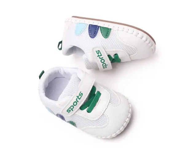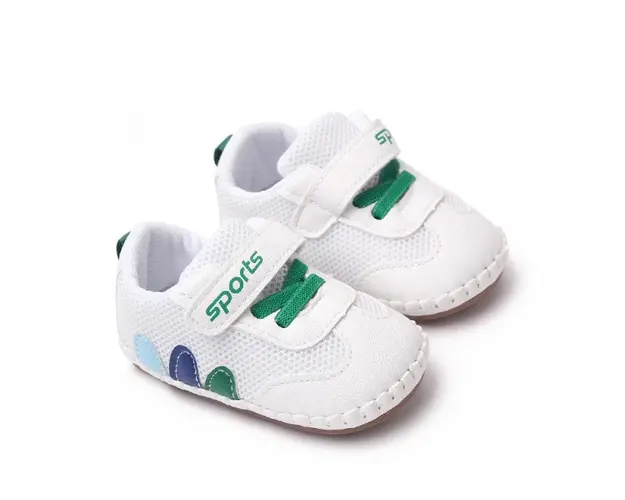 Marimi: 3 -6 luni ( lungime talpita la interior 10,5 cm, lungime talpita la exterior 11 cm) 6-9 luni ( lungime talpita la interior 11,5 cm, lungime talpita la exterior 12 cm) 9-12 luni (lungime talpita la interior 12,5 cm, lungime talpita la exterior 13 cm) Adidasi pentru bebelusi, se inchid cu sireturi din elastic si bareta cu arici intr-o parte. In laterale sunt prevazuti cu insertii verzi si albastre. Culoare: alb Material: piele ecologica cu insertie de material textil Talpa: cauciuc moale antiderapant Produsul cu denumirea Adidasi albi cu verde - Leaves face parte din brandul Eurobaby, se afla in categoria Barbie si subcategoria