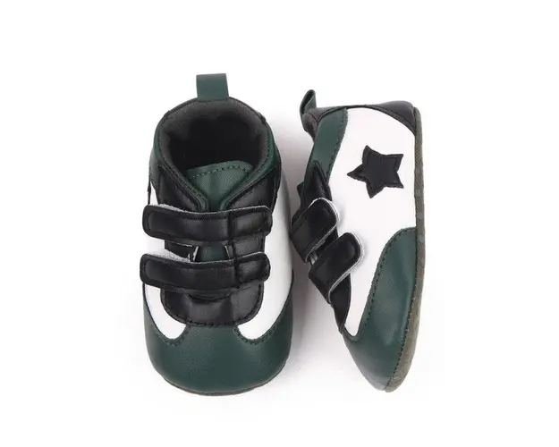 Marimi: 3 -6 luni ( lungime talpita la interior 10,5 cm, lungime talpita la exterior 11 cm) 6-9 luni ( lungime talpita la interior 11,6 cm, lungime talpita la exterior 12 cm) 9-12 luni (lungime talpita la interior 12,7 cm, lungime talpita la exterior 13 cm) Adidasi pentru baietei, din material tip piele ecologica, se inchid cu barete cu arici intr-o parte, cu o steluta aplicata intr-o parte. Culoare: alb cu verde Talpa: material textil cu inscriptie antiderapanta Produsul cu denumirea Adidasi albi cu verde - Steluta face parte din brandul Eurobaby, se afla in categoria Barbie si subcategoria