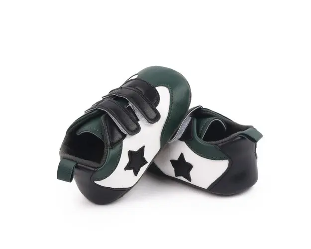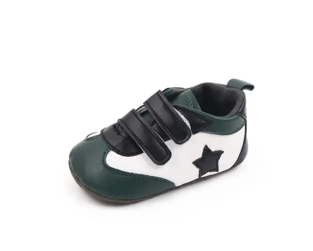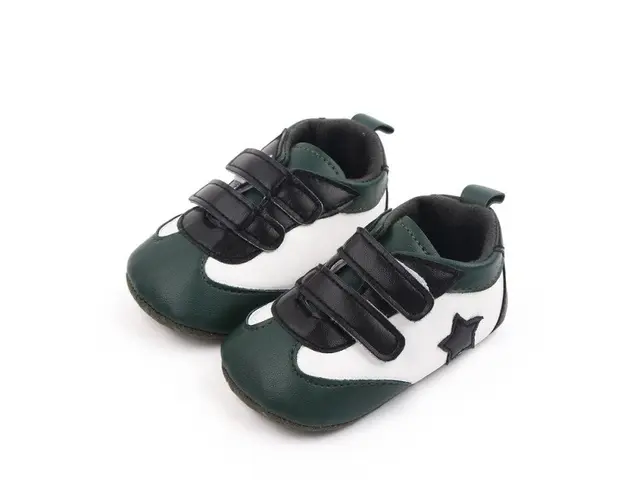 Marimi: 3 -6 luni ( lungime talpita la interior 10,5 cm, lungime talpita la exterior 11 cm) 6-9 luni ( lungime talpita la interior 11,6 cm, lungime talpita la exterior 12 cm) 9-12 luni (lungime talpita la interior 12,7 cm, lungime talpita la exterior 13 cm) Adidasi pentru baietei, din material tip piele ecologica, se inchid cu barete cu arici intr-o parte, cu o steluta aplicata intr-o parte. Culoare: alb cu verde Talpa: material textil cu inscriptie antiderapanta Produsul cu denumirea Adidasi albi cu verde - Steluta face parte din brandul Eurobaby, se afla in categoria Barbie si subcategoria