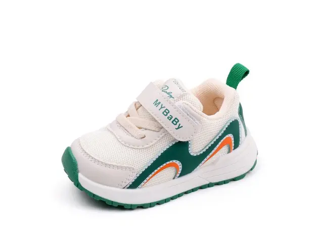Marimi: 19 (lungime talpita in interior 11,5 cm) (marime producator 14) 20 (lungime talpita in interior 12 cm) (marime producator 15) 21 (lungime talpita in interior 12,5 cm) (marime producator 16) 22 (lungime talpita in interior 13 cm) (marime producator 17) 23 (lungime talpita in interior 13,5 cm) (marime producator 18) 24 (lungime talpita in interior 14 cm) (marime producator 19) 25 (lungime talpita in interior 14,5 cm) (marime producator 20) 26 (lungime talpita in interior 15 cm) (marime producator 21) Adidasi pentru bebelusi, din material textil cu insertie de material tip piele ecologica, se inchid cu sireturi din elastic si bareta cu arici intr-o parte. Culoare: alb cu insertii laterale verzi Talpa: cauciuc moale si flexibil, ideal pentru primii pasi Produsul cu denumirea Adidasi albi cu verde - Valuri face parte din brandul Eurobaby, se afla in categoria Barbie si subcategoria