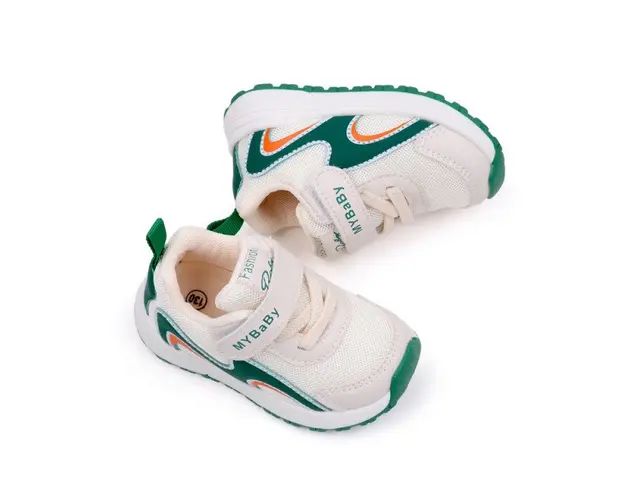 Marimi: 19 (lungime talpita in interior 11,5 cm) (marime producator 14) 20 (lungime talpita in interior 12 cm) (marime producator 15) 21 (lungime talpita in interior 12,5 cm) (marime producator 16) 22 (lungime talpita in interior 13 cm) (marime producator 17) 23 (lungime talpita in interior 13,5 cm) (marime producator 18) 24 (lungime talpita in interior 14 cm) (marime producator 19) 25 (lungime talpita in interior 14,5 cm) (marime producator 20) 26 (lungime talpita in interior 15 cm) (marime producator 21) Adidasi pentru bebelusi, din material textil cu insertie de material tip piele ecologica, se inchid cu sireturi din elastic si bareta cu arici intr-o parte. Culoare: alb cu insertii laterale verzi Talpa: cauciuc moale si flexibil, ideal pentru primii pasi Produsul cu denumirea Adidasi albi cu verde - Valuri face parte din brandul Eurobaby, se afla in categoria Barbie si subcategoria