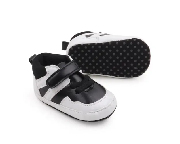 Marimi: 3 -6 luni (lungime talpita la interior 10,5 cm, lungime talpita la exterior 11 cm) 6-9 luni (lungime talpita la interior 11,6 cm, lungime talpita la exterior 12 cm) 9-12 luni (lungime talpita la interior 12,7 cm, lungime talpita la exterior 13 cm) Culoare: negru cu alb Material: piele ecologica Inchidere: sireturi din elastic si bareta cu arici Talpa: material textil cu inscriptie antiderapanta Adidasi pentru bebelusi, confectionata din materiale moi, special creata pentru a oferi confort si suport in timpul primilor pasi. Talpa antiderapanta asigura stabilitate pe diverse suprafete, iar inchiderea cu arici sau sireturi elastice permite o ajustare rapida si usoara. Designul modern si atractiv face ca aceasta incaltaminte sa fie potrivita atat pentru baieti, cat si pentru fete, fiind ideala pentru activitatile zilnice. Perfecta pentru a completa tinutele celor mici. Produsul cu denumirea Adidasi bebelusi, negri cu detalii albe face parte din brandul Eurobaby, se afla in categoria Barbie si subcategoria