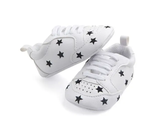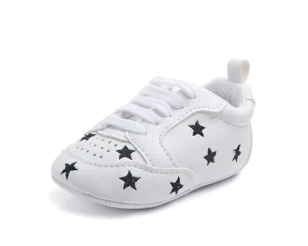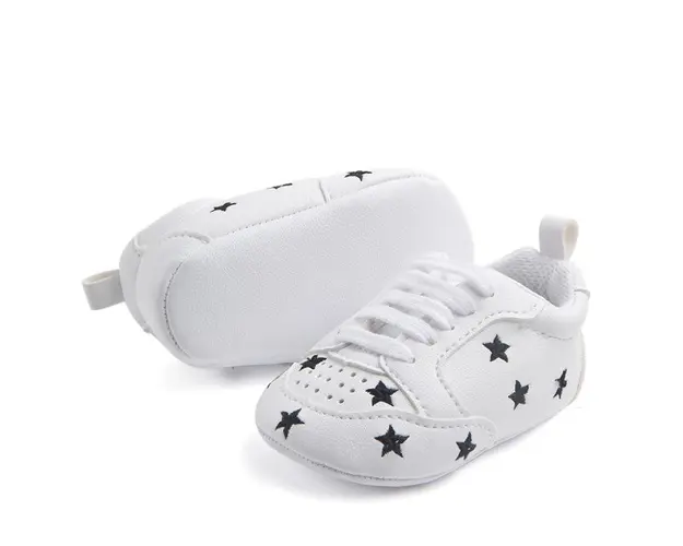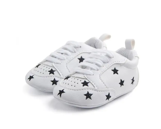 Marimi: 3-6 luni ( lungime talpita la interior 10,5 cm, lungime talpita la exterior 11 cm) 6-9 luni ( lungime talpita la interior 11,6 cm, lungime talpita la exterior 12 cm) 9-12 luni (lungime talpita la interior 12,7 cm, lungime talpita la exterior 13 cm) Adidasi din piele ecologica, albi cu stelute negre, se inchid cu siret. Talpa din material tip piele ecologica. Produsul cu denumirea Adidasi - Black star face parte din brandul , se afla in categoria Tetine si subcategoria