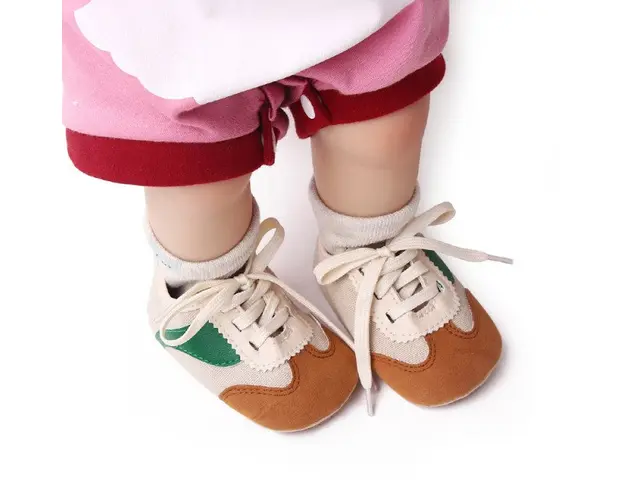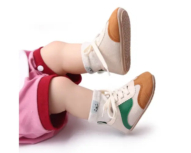 Marimi: 3 -6 luni ( lungime talpita la interior 10,5 cm, lungime talpita la exterior 11 cm) 6-9 luni ( lungime talpita la interior 11,5 cm, lungime talpita la exterior 12 cm) 9-12 luni (lungime talpita la interior 12,5 cm, lungime talpita la exterior 13 cm) Adidasi pentru bebelusi, se inchid cu sireturi. Culoare: crem cu maro si verde Material: material textil cu insertie de material tip piele ecologica Talpa: cauciuc moale antiderapant Produsul cu denumirea Adidasi crem cu maro si verde - Sporty face parte din brandul Sevibebe, se afla in categoria Barbie si subcategoria