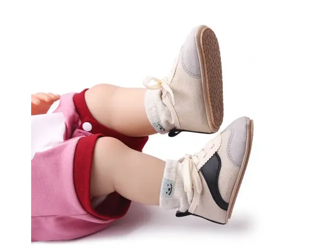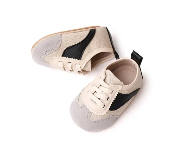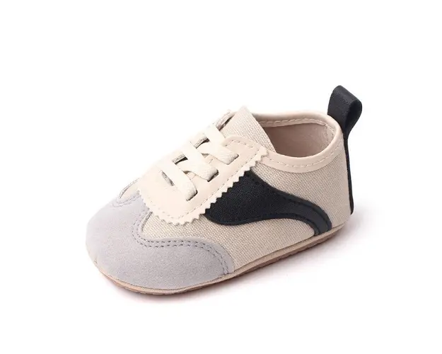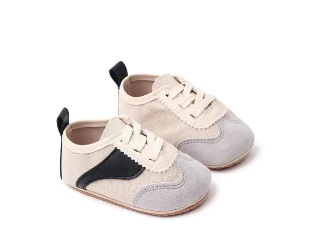 Marimi: 3 -6 luni ( lungime talpita la interior 10,5 cm, lungime talpita la exterior 11 cm) 6-9 luni ( lungime talpita la interior 11,5 cm, lungime talpita la exterior 12 cm) 9-12 luni (lungime talpita la interior 12,5 cm, lungime talpita la exterior 13 cm) Adidasi pentru bebelusi, se inchid cu sireturi. Culoare: crem cu negru si gri Material: material textil cu insertie de material tip piele ecologica Talpa: cauciuc moale antiderapant Produsul cu denumirea Adidasi crem cu negru si gri - Sporty face parte din brandul Superfinish, se afla in categoria Barbie si subcategoria