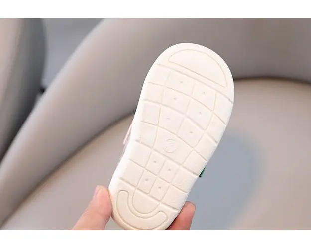 Marimi: 9-12 (lungime talpita in interior 12 cm) (marime producator 16) 20 (lungime talpita in interior 12,5 cm) (marime producator 17) 21 (lungime talpita in interior 13 cm) (marime producator 18) 22 (lungime talpita in interior 13,5 cm) (marime producator 19) 23 (lungime talpita in interior 14 cm) (marime producator 20) Adidasi pentru baietei, din material tip piele ecologica, se inchid cu bareta cu arici intr-o parte, pe care este aplicat un ursulet verde. Culoare: crem Talpa: cauciuc moale si flexibil Produsul cu denumirea Adidasi crem pentru baietei - Green Teddy face parte din brandul Eurobaby, se afla in categoria Barbie si subcategoria